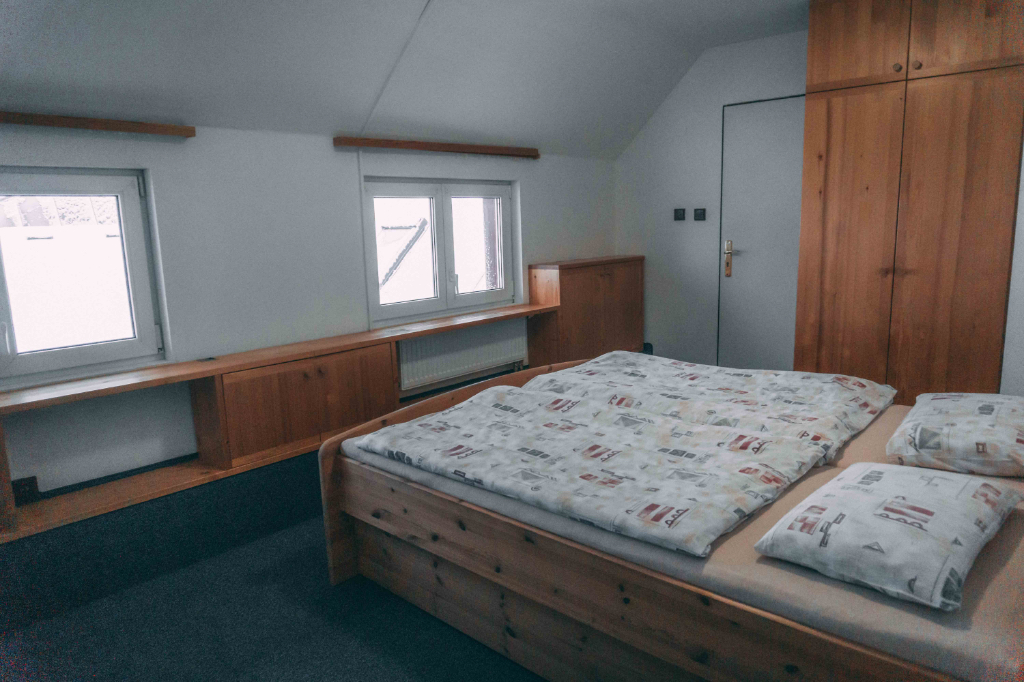 Bei Interesse kann das gesamte Haus gemietet werden (Kapazität 17 Personen). Die erste Etage ist ein Appartement mit eigener Küche und Sozialeinrichtungen (Platz für 8 Personen). Im zweiten Stock gibt es drei Zimmer (zwei-, drei-, vierbett) mit eigener Sozialeinrichtung. Im Erdgeschoss gibt es ein Gesellschaftsraum mit dem Kachelofen und eine voll ausgestattete Küche. Im gesamten Objekt gibt es eine WLAN-Verbindung.